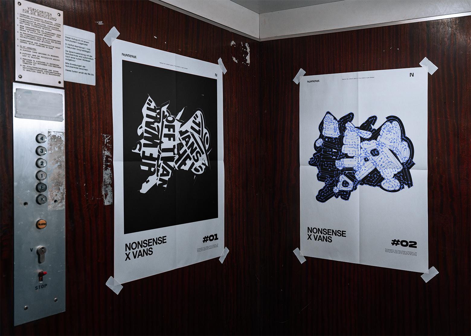Designed by slicing Vans stickers apart and rearranging them, exploring the idea of painting with type and logos as the medium. Even when the brand is shredded and rebuilt, its identity still pushes through.